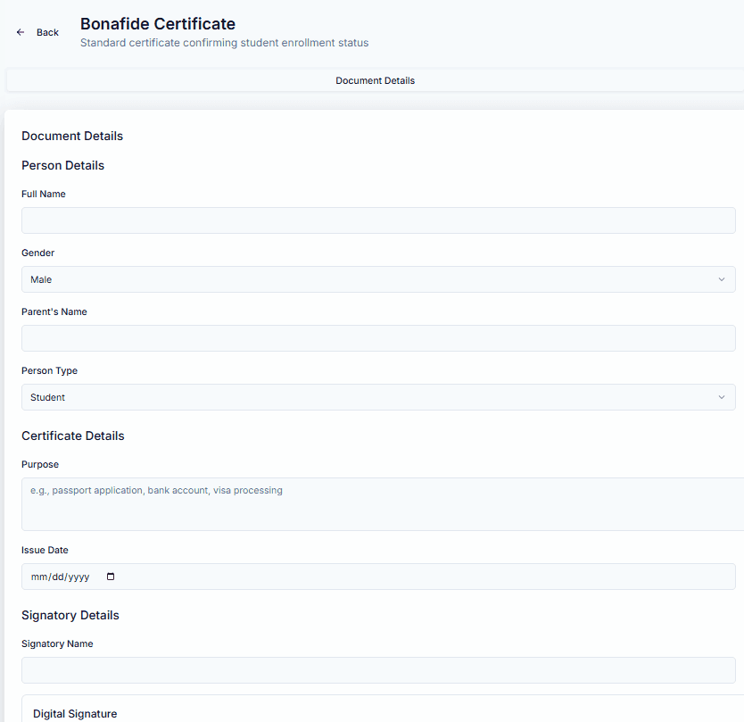 "Last month, Rohan needed a bonafide certificate urgently for a student visa. What normally takes days was done in hours with Certifyr’s pre-filled form and digital signing. It was fast, secure, and stress-free — for both him and our staff. Soon, QR-based verification will make it even better."